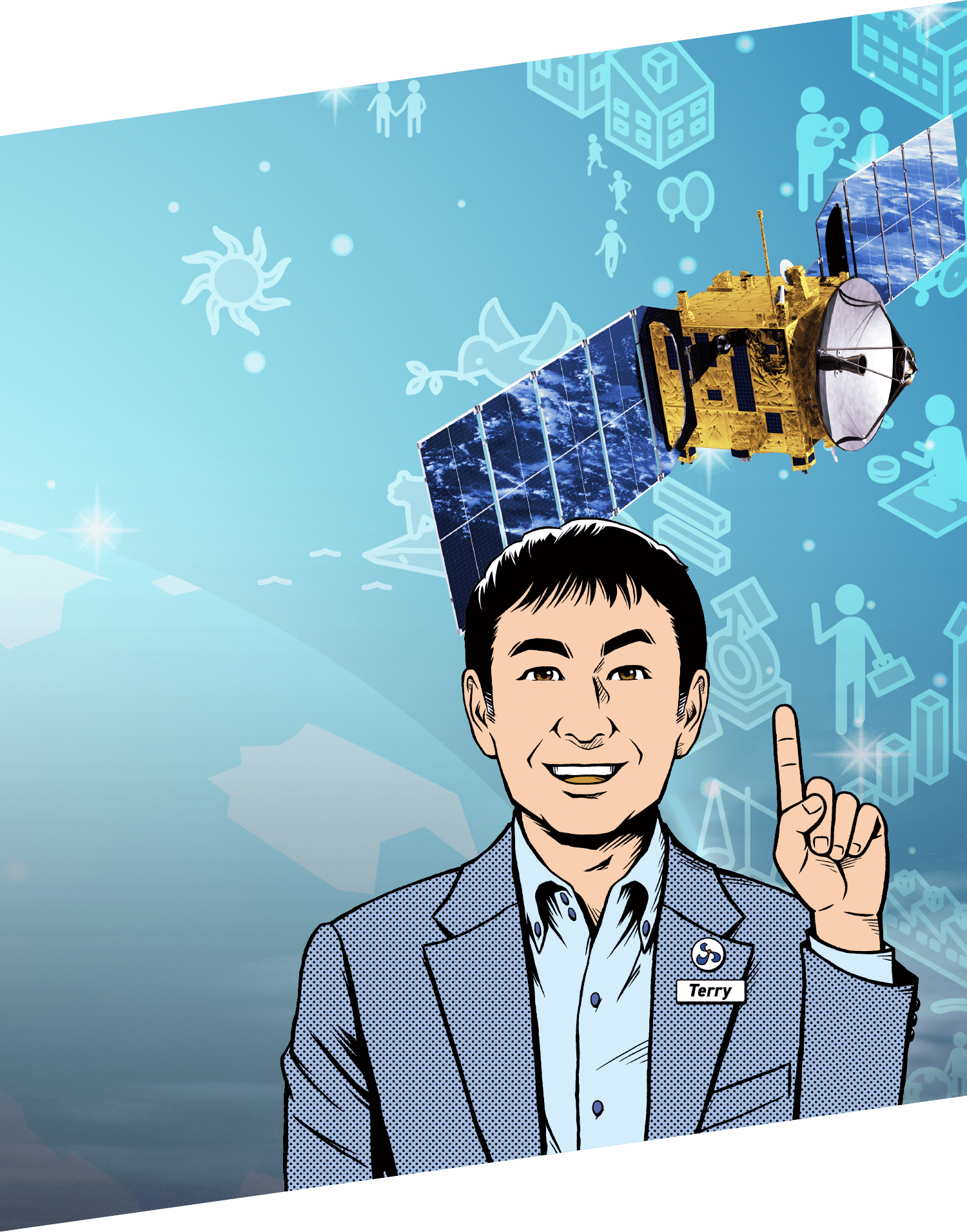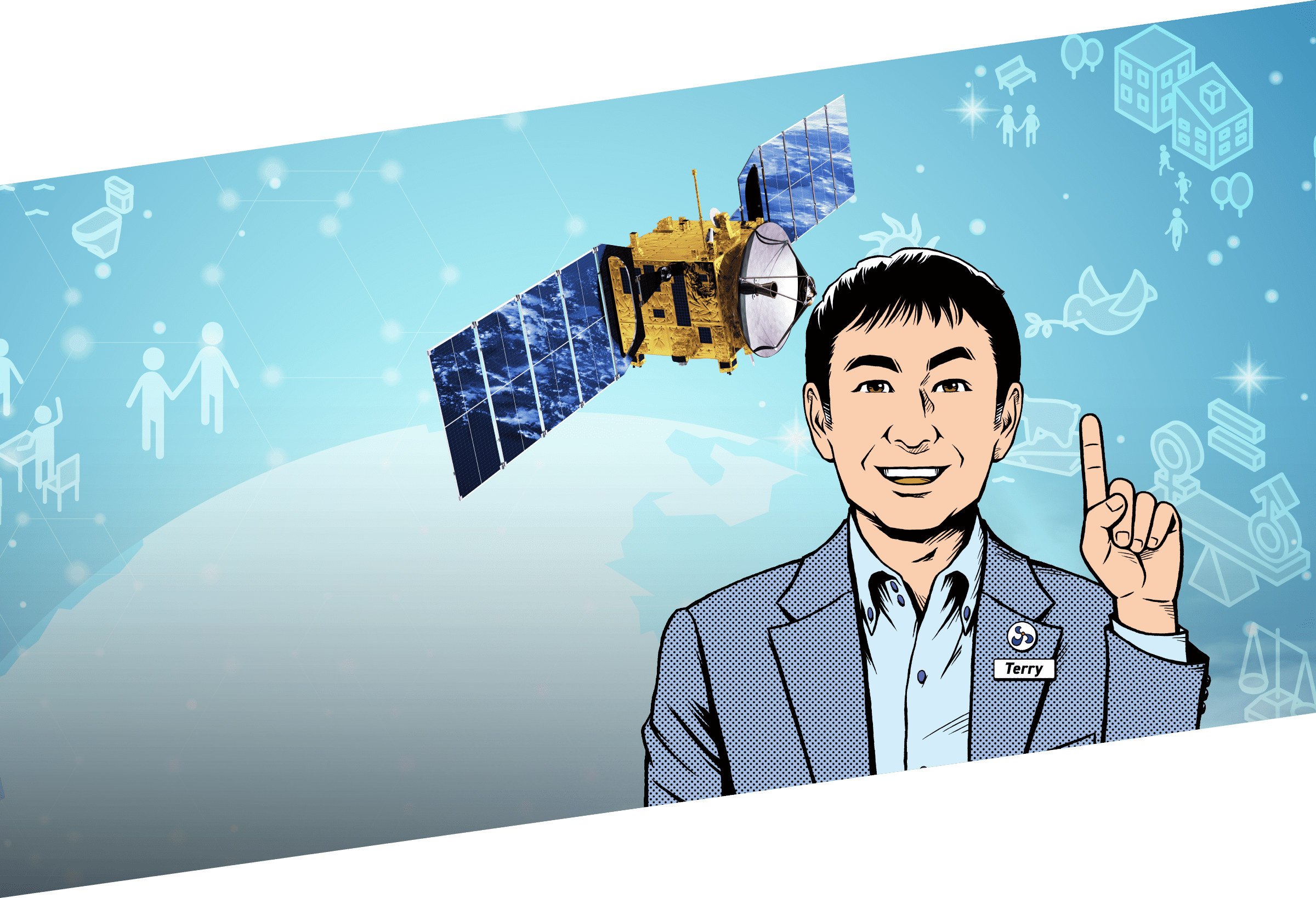 その子は、突然、空から降りてきた。「はじめまして、私は、スカパージェイサッ子。」彼女は、宇宙実業社 スカパーJSATを代表する人工衛星。彼女の声にぜひ耳を傾けてみてください。